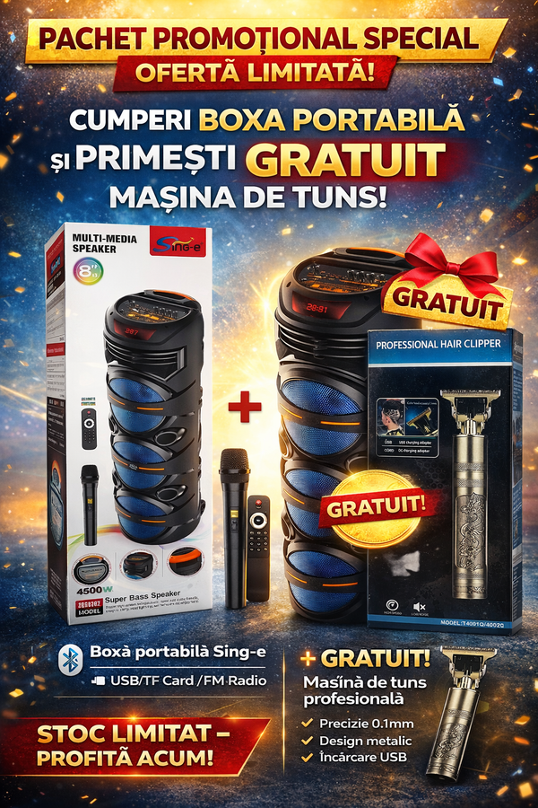 SUPER OFERTĂ boxă portabilă BT cu o mașină de tuns cadou !!!