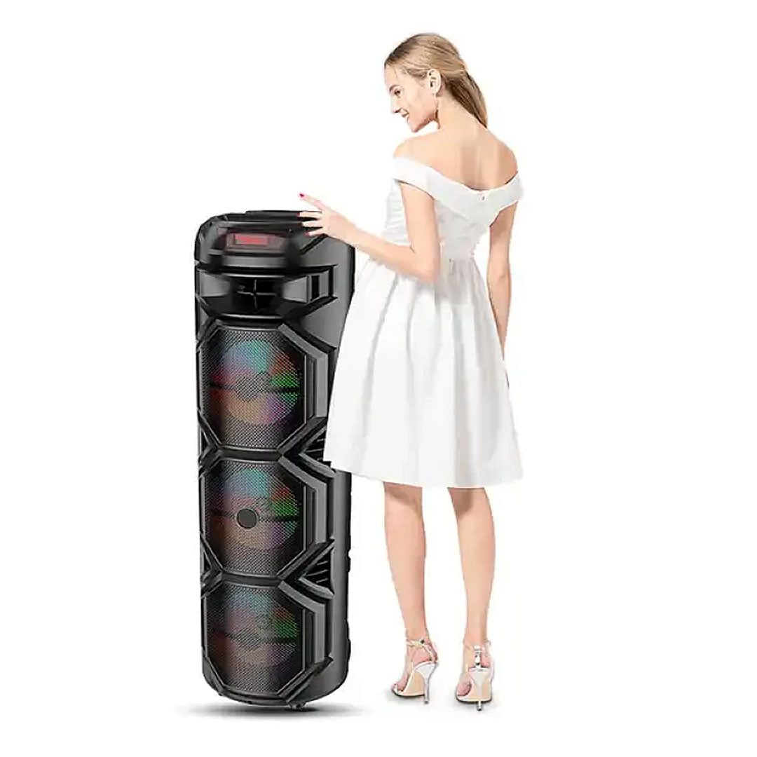 Boxa portabilă Bluetooth cu 3 difuzoare ZQS8301 este partenerul ideal pentru petrecerile tale, evenimentele în aer liber sau pur și simplu pentru a-ți amplifica experiența auditivă în timpul momentelor de relaxare acasă. Echipată cu trei difuzoare puternice și tehnologie Bluetooth avansată, această boxă oferă un sunet de înaltă calitate și o conectivitate fără fir convenabilă.