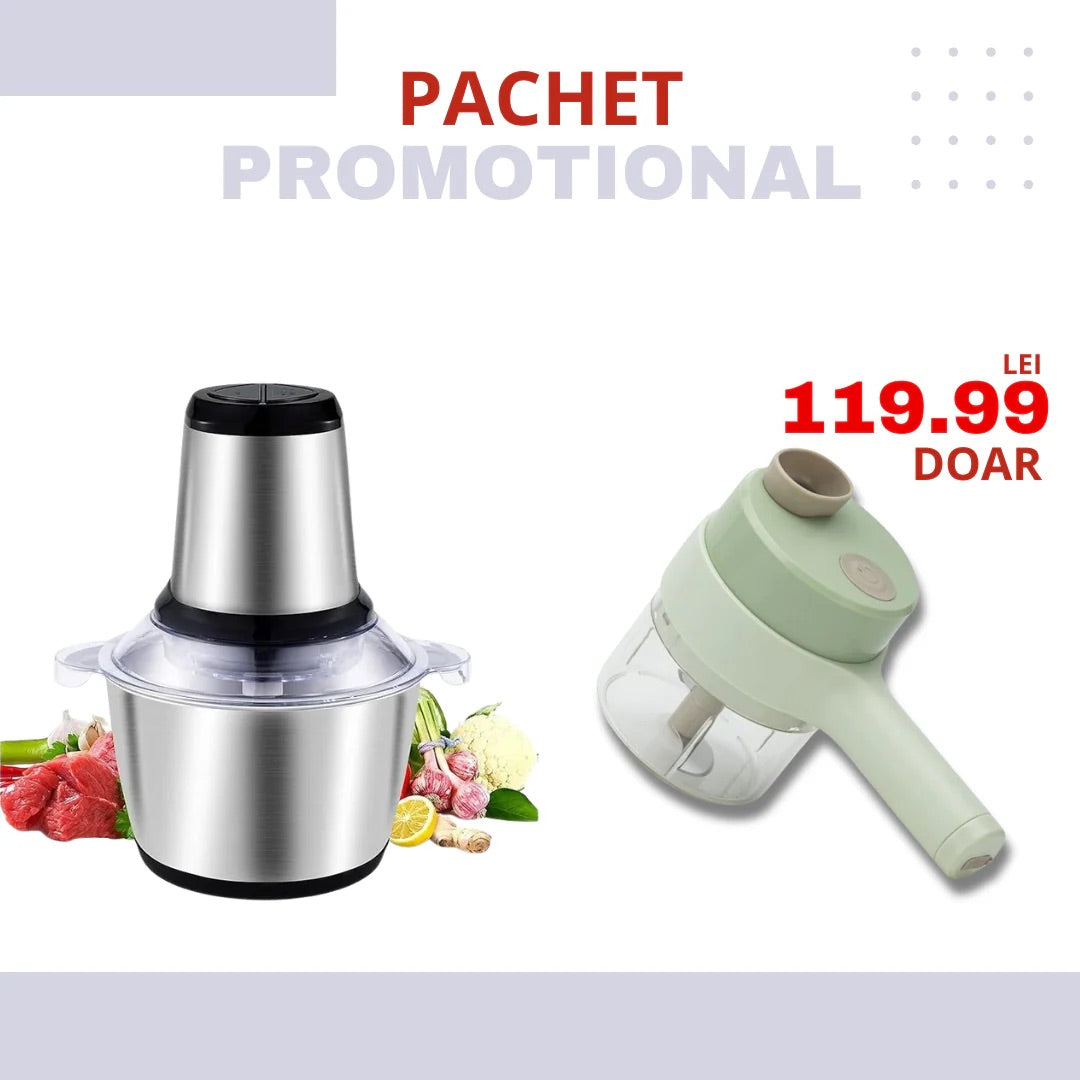 PACHET PROMOTIONAL | TOCATOR ELECTRIC, CU VAS DIN INOX + TOCATOR SI MARUNTITOR ELECTRIC 4IN1