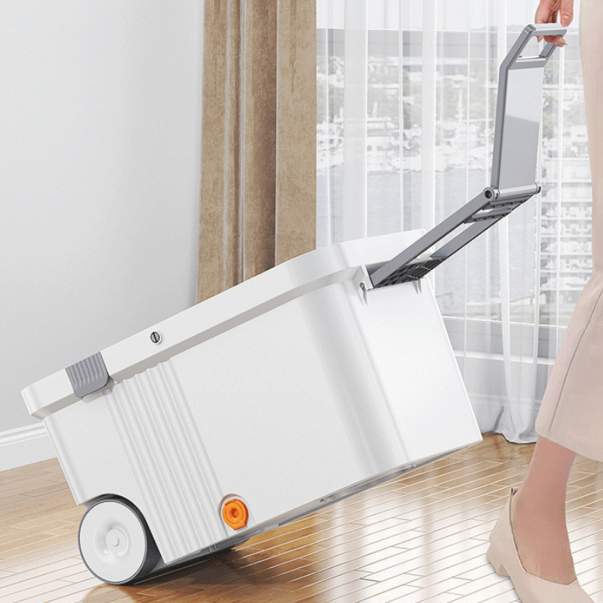 2. Este dotata cu 2 rotile si cu 2 manere pentru a facilita mutarea lina oriunde ai tu nevoie in casa in timp ce faci curat.