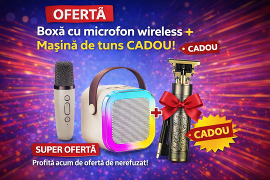 boxă portabilă, roz, 6W, iluminare LED, schimbare voce, baterii reîncărcabile + masina de tuns cadou !