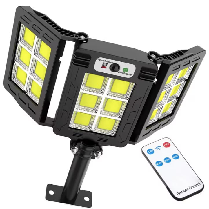 Daca doriti sa imbunatatiti aspectul curtii sau a oricarui spatiu exterior de care dispuneti si totodata, sa aveti aceste zone iluminate pe timpul noptii, va recomandam lampa solara tripla. Aceasta dispune de telecomanda si suport de prindere, ideala pentru iluminarea mediului exterior.
