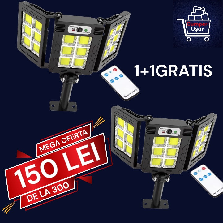 Set X5 LĂMPI cu proiector solar 150W,160 LED-uri COB ,cu senzor de miscare, sistem prindere inclus