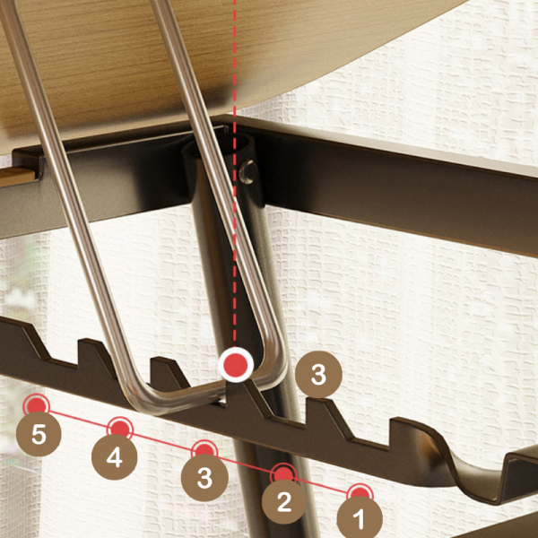 1. Proiectat cu un blat reglabil pe inaltime in 5 pozitii pentru laptop (0-36°) + un blat fix pentru mouse si pentru pahar.