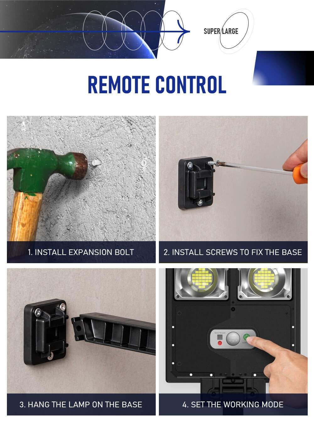 Dispozitivul are incorporat un senzor de miscare cu infrarosu care detecteaza miscarea pana la aproximativ 2-10 metri, pornind lampa automat atunci cand cineva sau ceva trece prin raza acestuia, daca este montata la minim 5 m inaltime.