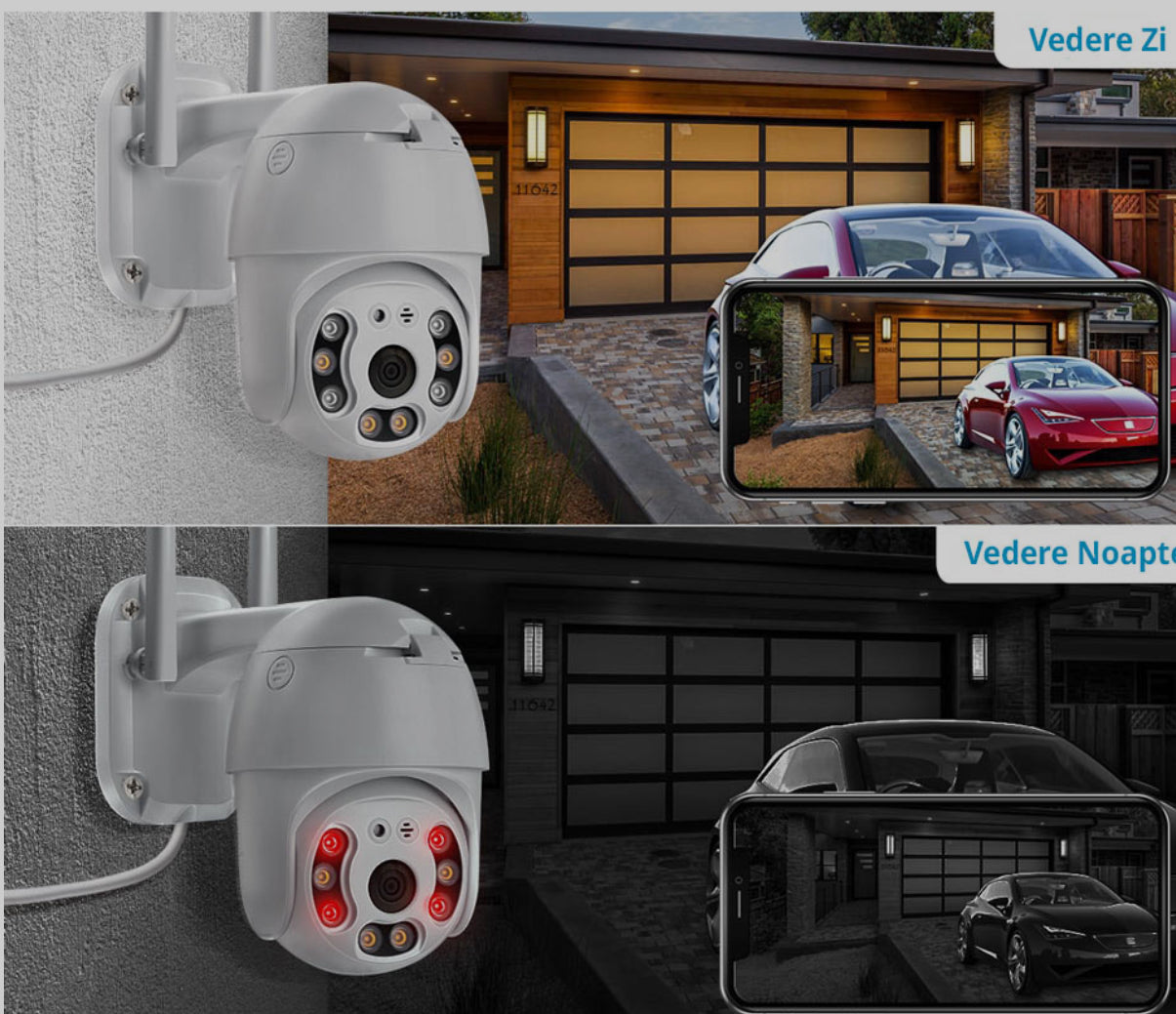 Camera poate fi controlata din telefon, are microfon si speaker, deci puteti auzi si puteti vorbi prin intermediul camerei.