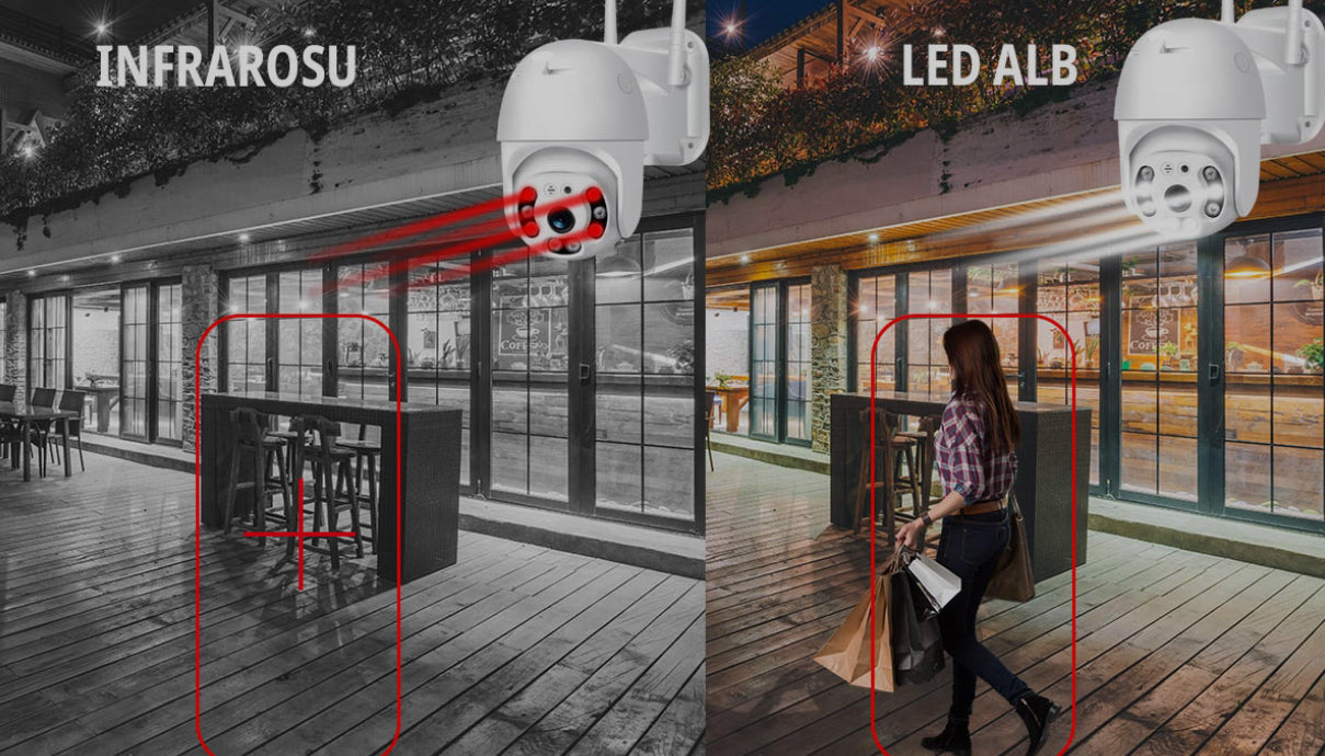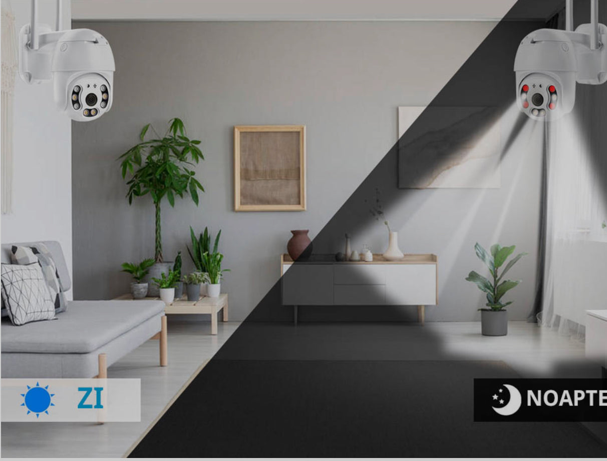 MEGA OFERTĂ 1+1 GRATIS camera de supraveghere smart Wi-Fi Pro S 4K, 5MP, zoom digital x4, inregistrare video UHD, rotire 360 de grade, lumini led, vedere full color noaptea, microfon si difuzor incorporate, senzor de miscare si stocare card pana la 128GB
